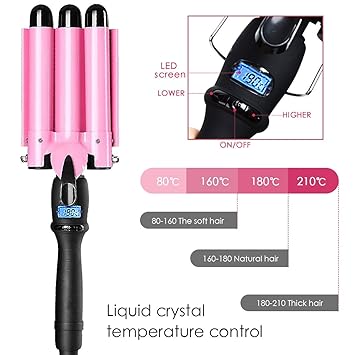 Amazon Com 3 Barrel Waver Iron Hair Waver Curler Iron Hair Curler 1 In Professional Salon Ceramic Curling Iron New Hair Styling Tools With Lcd Display Pink Beauty