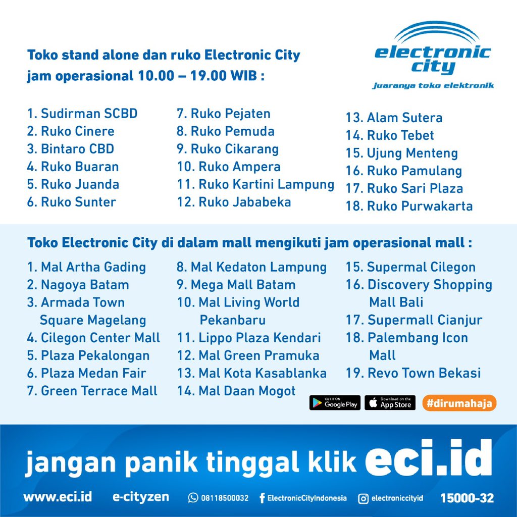 Electronic City On Twitter Kami Sampaikan Kepada Pelanggan Setia Kami Beberapa Toko Electronic City Masih Tetap Buka Dengan Jam Operasional Terbatas Dan Pelanggan Juga Dapat Memanfaatkan Layanan Toko Online Kami Https T Co D1gcpnwrqh