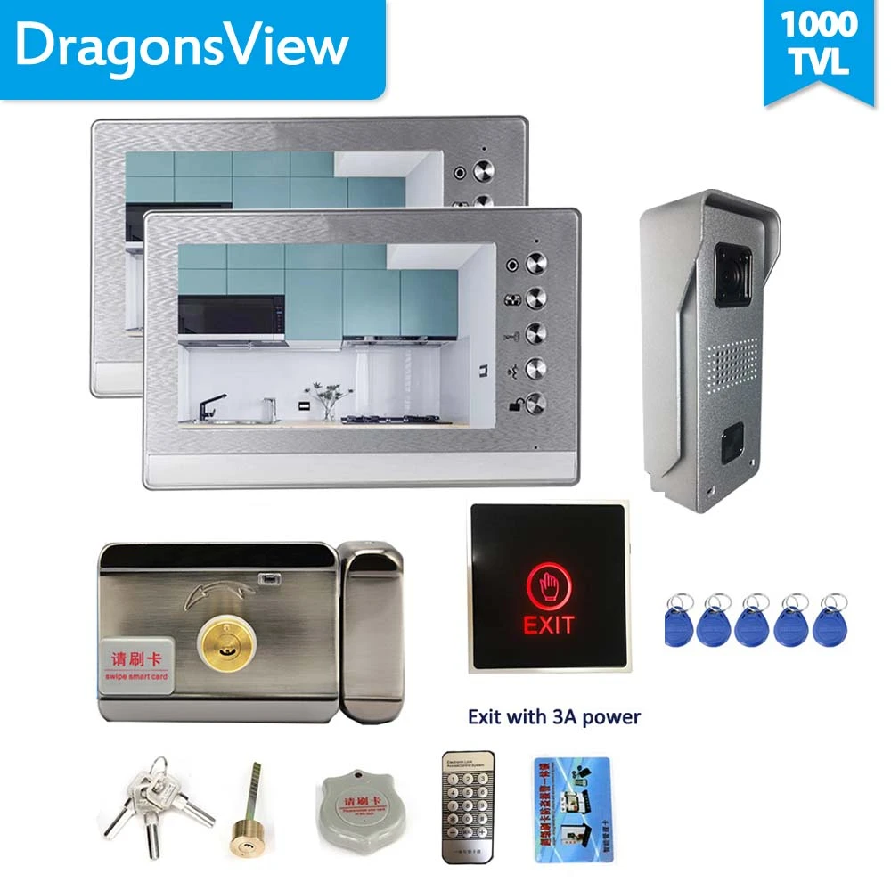 Dragonsview 7 Inch Video Door Phone With Electric Lock Exit Button Video Intercom Doorbell Camera System 2 Monitors Unlock Talk Video Intercom Aliexpress