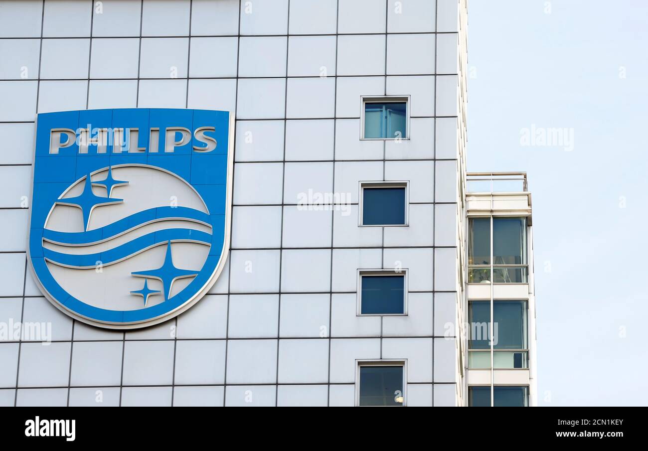 The Company Logo On Dutch Electronics Multinational Koninklijke Philips Electronics Headquarters In Amsterdam Holland Stock Photo Alamy